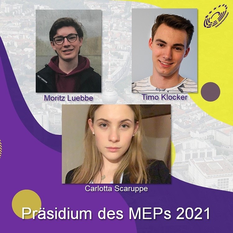 2020 dachten wir, das MEP in digitaler Form wird ein einmaliges Erlebnis sein. Doch auch in diesem Jahr werden wir uns, situationsbedingt, nicht in Berlin, sondern nur online treffen. Umso schöner ist es jedoch, zu sehen, wie viel junge Menschen sich dennoch dazu bereit erklärt haben, das MEP mit uns durchzuführen. Wir brauchen uns nichts vormachen – natürlich ist es eine Herausforderung, das MEP im digitalen Format gleichermaßen gut umsetzen zu können. Aber gleichzeitig bedeutete es auch eine Chance neue Wege zu gehen und neue Erfahrungen zu sammeln. Zum Beispiel können in diesem Jahr besser Expert:innen in die Ausschüsse eingebaut werden, da diese nicht vor Ort in Berlin sein müssen.